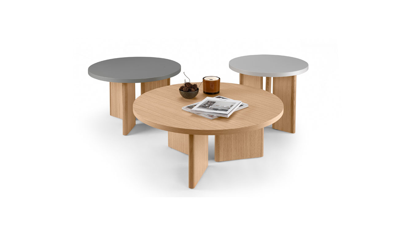 Τραπεζάκια σαλονιού με ξύλινη βάση και επιφάνεια σε διάφορα χρώματα ξύλου και λάκας