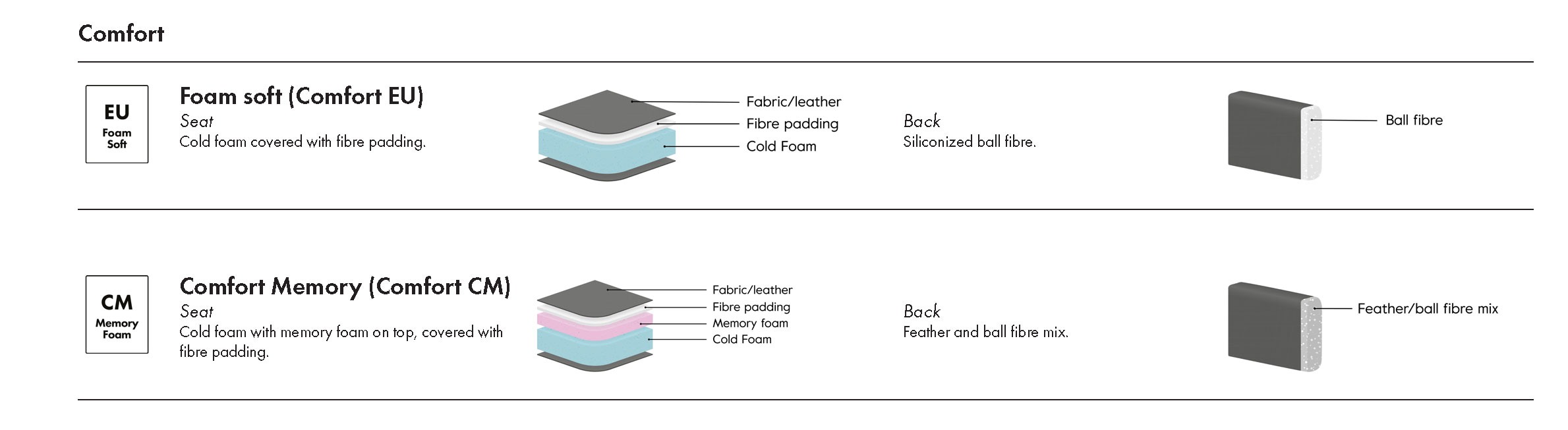 • Δυνατότητα επιλογής τύπου καθίσματος: cold foam, memory foam.