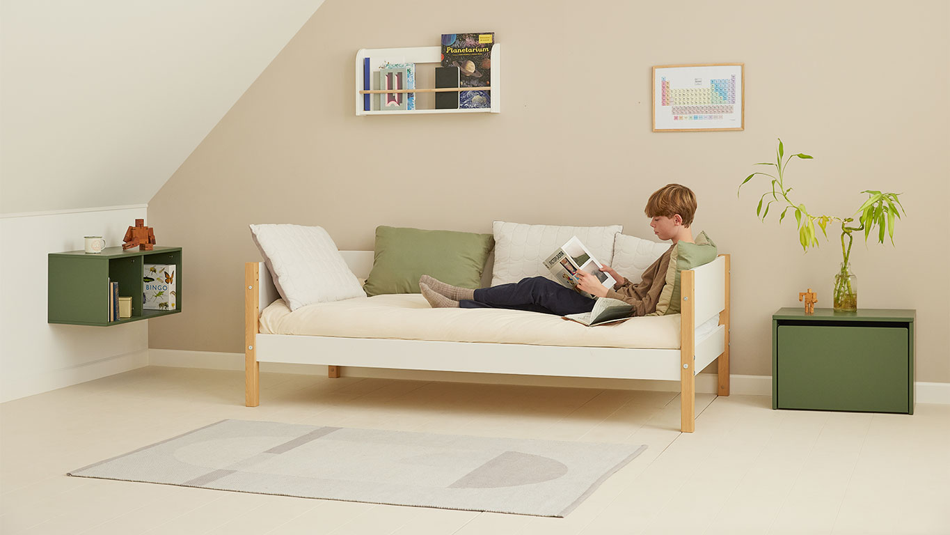 Η σειρά Nor είναι κατασκευασμένη από MDF κατ.1 σε λευκό λάκα σε συνδυασμό με δρύινα πόδια στο φυσικό χρώμα,αναδεικνύοντας έτσι τον λιτό σκανδιναβικό σχεδιασμό.Στο χαμηλό κρεβάτι μπορείς να ξεκινήσεις με μια απλή μορφή μόνο με τα κεφαλάρια ή να διαλέξεις το στυλ των προστατευτικών αλλά και να προσθέσεις συρόμενο κρεβάτι, συρτάρια αποθήκευσης ή και τα δύο!