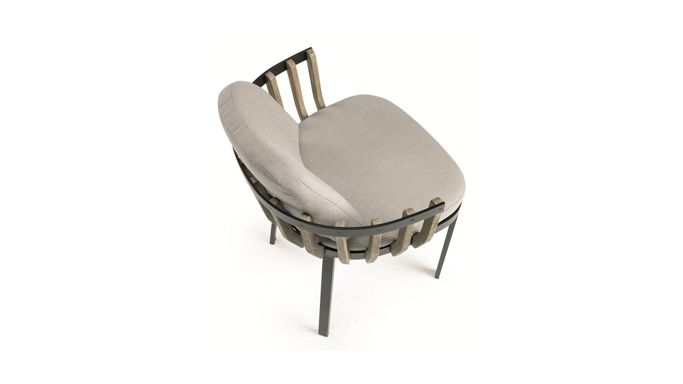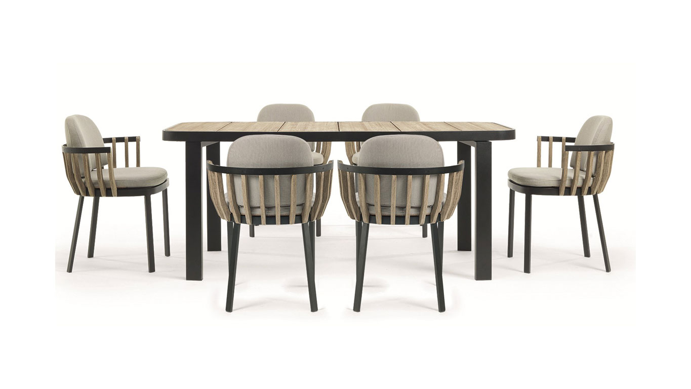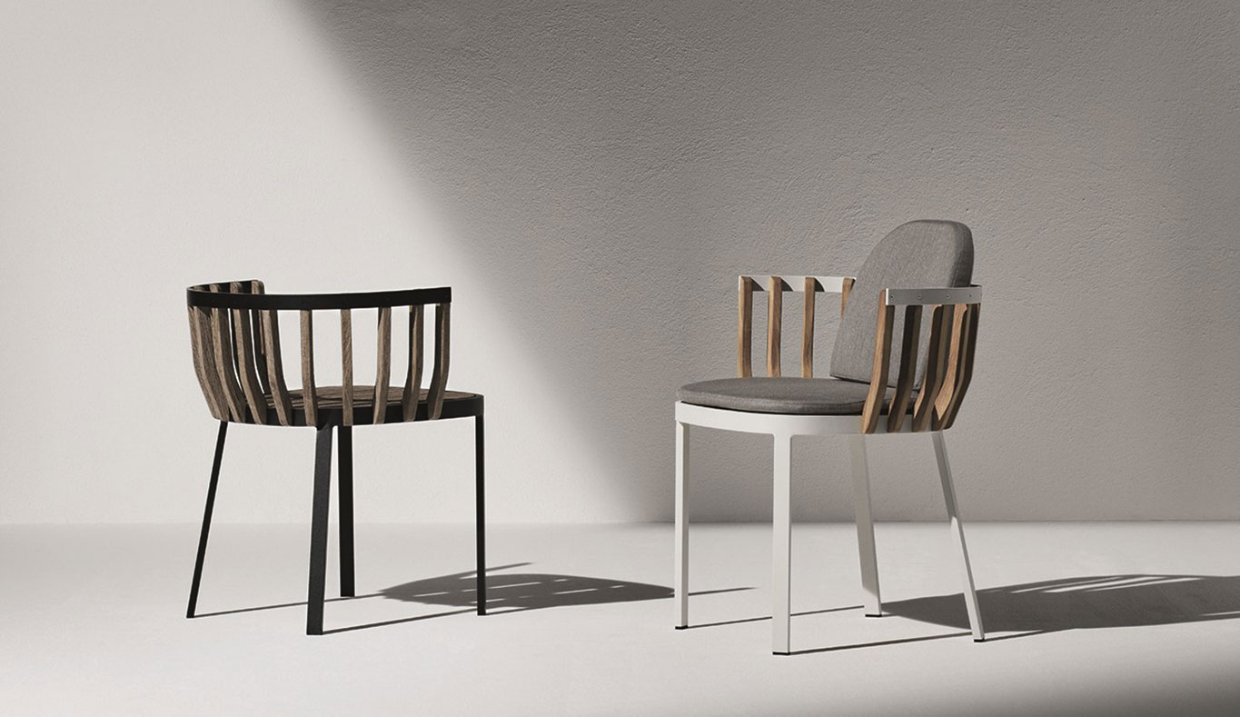 Οι καρέκλες από τη συλλογή Swing συνδυάζουν μοντέρνο ξύλινο σκελετό και στοιχεία αλουμινίου.