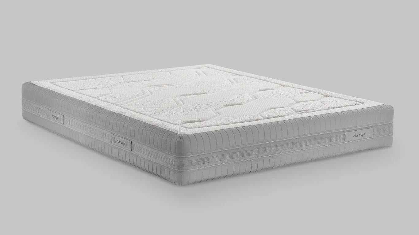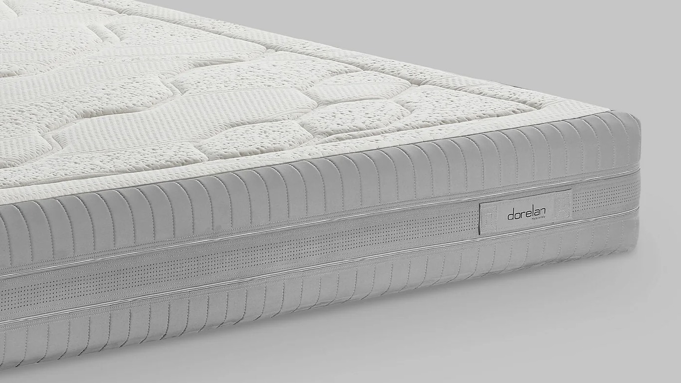 The viscose cover, enriched with a velvet side band, reflects elegance and attention to detail. The winter side features Myform Memory Air Clima padding for thermoregulating, breathable comfort. Fibersan and CoolPhase treatments ensure ideal microclimate management and protection.