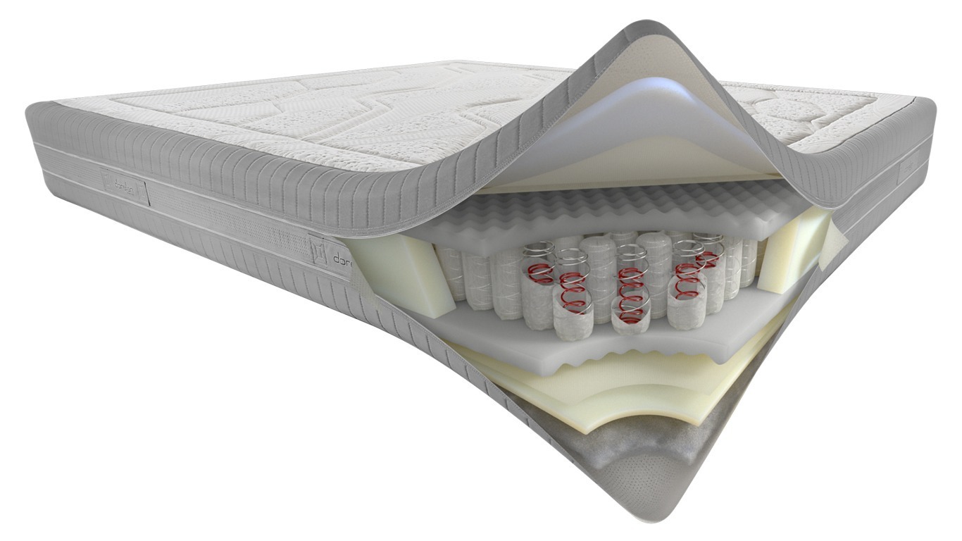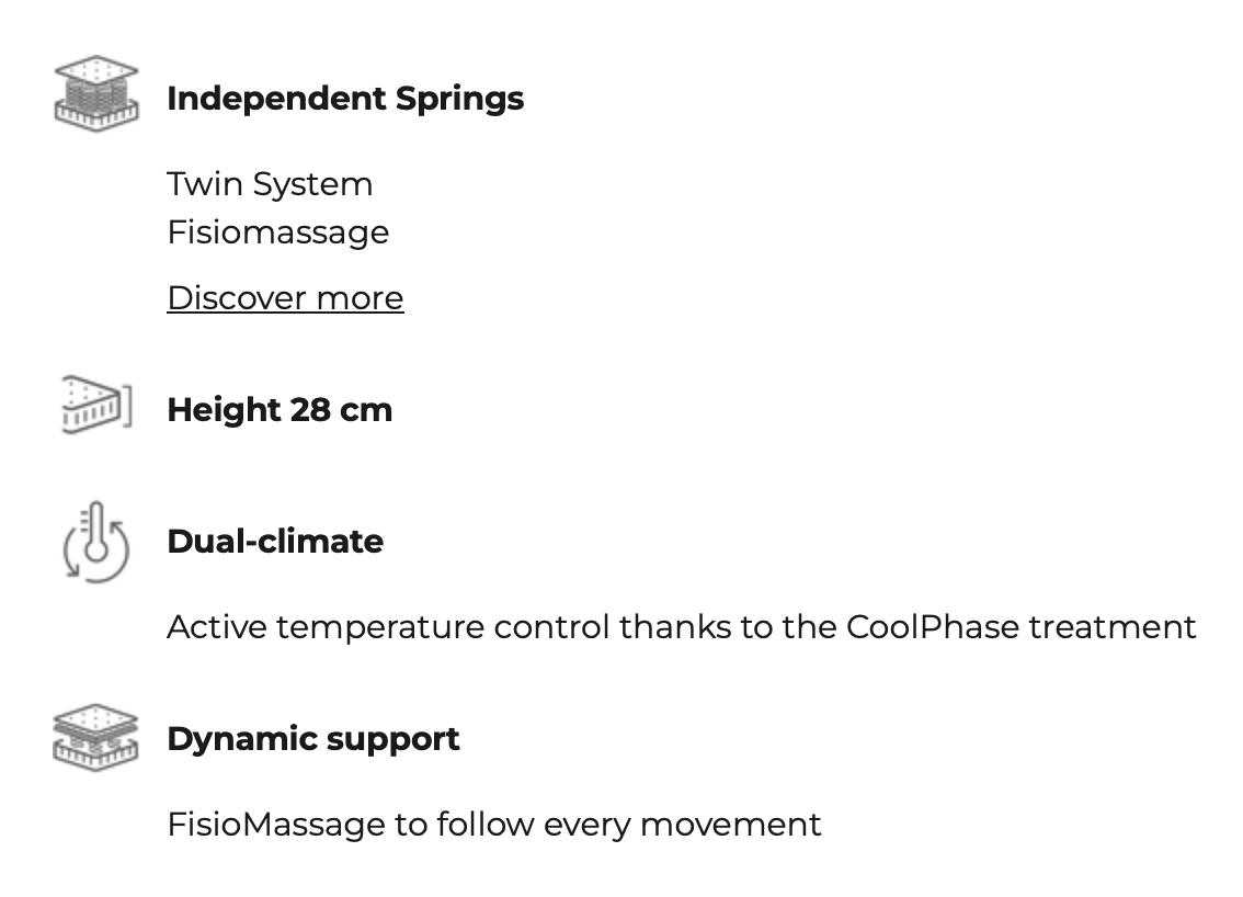 The Twin System spring core, with its dual coil structure, delivers precise, tailored support, enhanced by FisioMassage, which adapts smoothly to body movements.