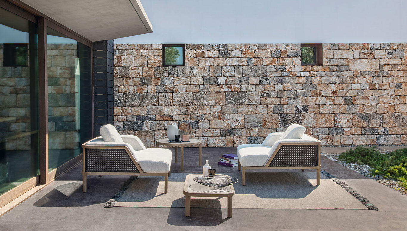 A collection of lounge chairs destined for large and prestigious outdoor spaces.