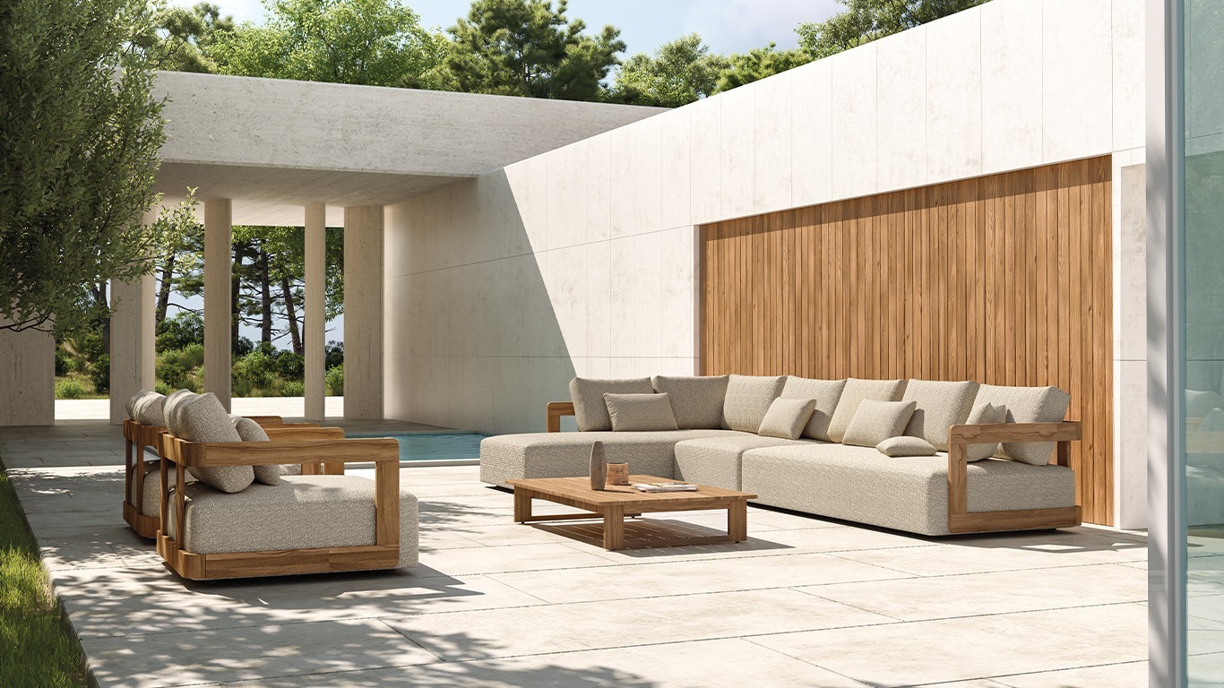 A collection of lounge sofas, chairs and coffee tables destined for large and prestigious outdoor spaces.