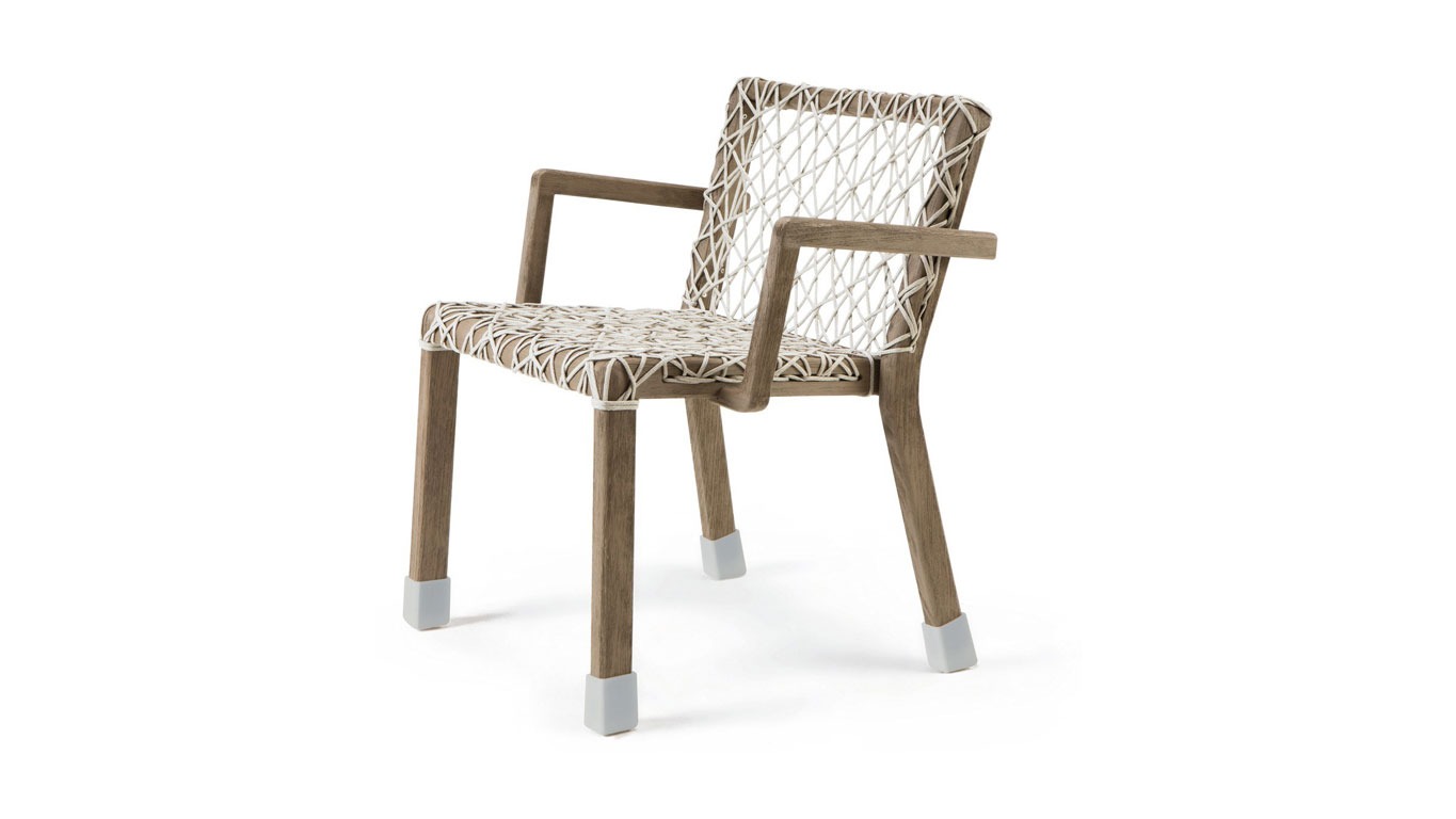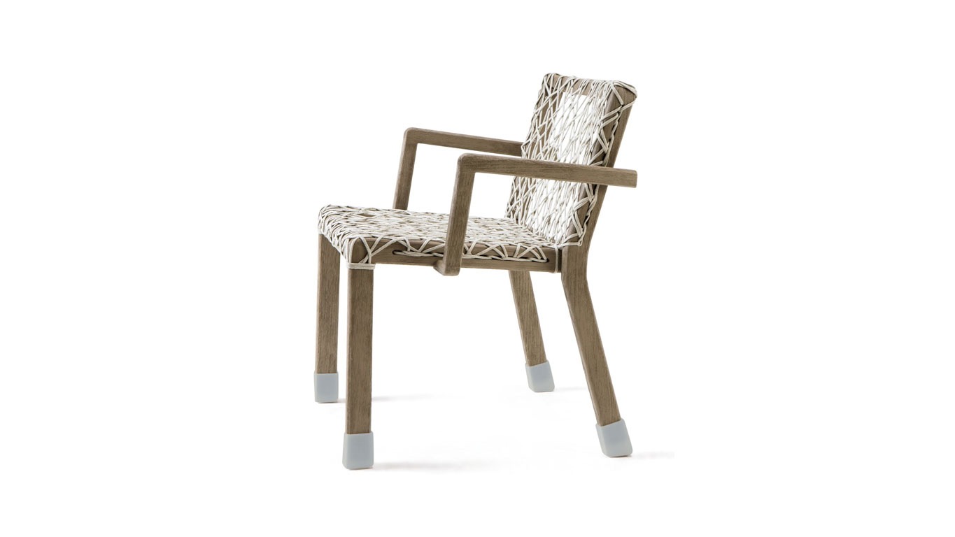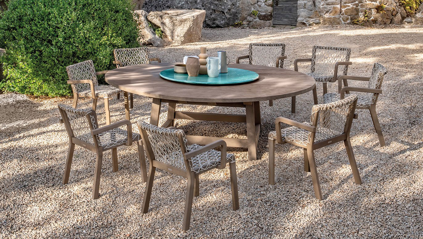 Comfortable and ergonomic, the Rafael armchairs match naturally to the irregular geometry of the tables, creating exclusive and contemporary outdoor dining sets.